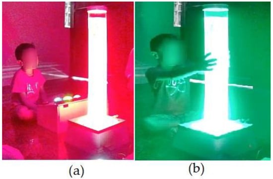 Autism spectrum disorder (ASD) is a neurodevelopmental disorder that affects communication, cognitive abilities, and social skills in individuals [1,2,3]. Sensory sensitivities are key features for diagnosing ASD, where the central nervous system does not process or respond to received sensory stimuli in the desired way [4,5]. In 2013, the American Psychiatric Association highlighted sensory sensitivities as important factors for diagnosing ASD [1]. These sensitivities may be observed in any sensory system, either auditory, visual, tactile, or olfactory [6,7]. Among these, visual or light sensitivity is a common sensory issue in children with ASD, which may lead to behavioral and learning difficulties [8,9]. The literature highlights that light and visual sensory sensitivity is reported by up to 75% of individuals with ASD and may exhibit varying degrees of sensitivity, such as hyper- or hypo-sensitivity. For example, a child who is hyper-sensitive often avoids bright lights, and they may become frightened by sudden flashes, while hypo-sensitive children are typically drawn to light, showing fascination with bright lights and their reflections [10,11,12,13,14]. According to the existing literature, visual sensitivities in individuals with ASD are frequently associated with certain colors or variations in illumination levels [8,15,16]. Identifying how children with ASD respond to sensory input is crucial for clinicians. This understanding helps them uncover the reasons behind the child’s challenging behaviors and enables them to create adaptive environments tailored to each child’s individual needs. Snoezelen rooms, also known as sensory rooms (SRs) or multi-sensory environments (MSEs), are specially designed to better understand and analyze the impact of sensory stimulation on individuals with neurodevelopmental disabilities under different conditions. These rooms include devices such as bubble tubes, wall panels, optical fibers, mirror balls, etc., to stimulate the senses of sight, touch, hearing, and smell [17,18,19,20]. Traditionally, sensory processing patterns in children have been identified using various assessment methods, including (i) collecting data through questionnaires and rating scales [21,22] and (ii) observing and annotating video recordings [23,24]. In the first approach, clinical practitioners gather information from caregivers or parents by asking about the child’s responses to different sensory stimuli faced in daily life. In the video observation method, clinicians record the child’s activities and manually annotate the videos to analyze their sensory responses. However, traditional subjective assessment methods may not capture the full range of sensory responses experienced by children, as they depend on information gathered from parents or caregivers. Additionally, video annotation methods, while potentially more detailed, are often time-consuming and require significant effort for accurate analysis. It is challenging for clinical practitioners to identify immediate over-stimulating and under-stimulating sensitivity behaviors exhibited by children through manual observations in sensory rooms. This limitation raises the need for automated methods that can provide more objective and comprehensive evaluations of sensory processing patterns in children with ASD.