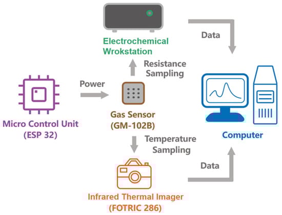 Aiming at the dynamic temperature and resistance characteristics of MEMS MOS sensor, a test system was designed and implemented with the structure diagram shown in Figure 3. The system consisted of a Microprogrammed Control Unit (MCU), infrared imaging device, electrochemical workstation and computer.