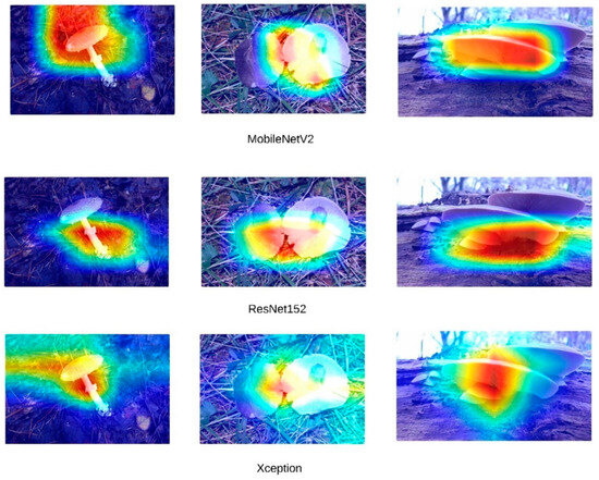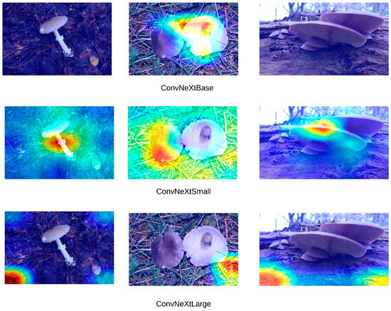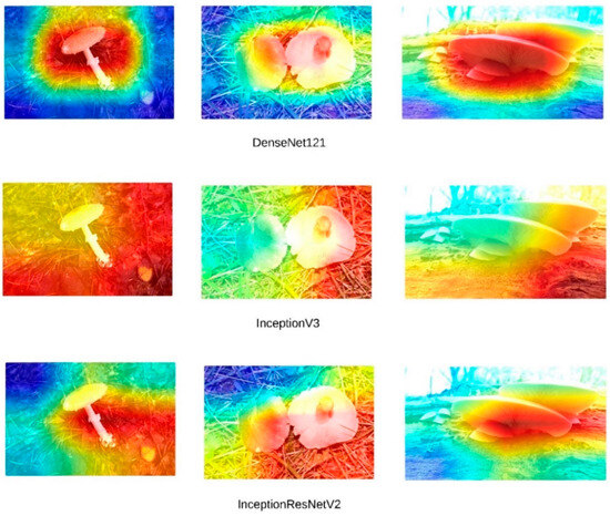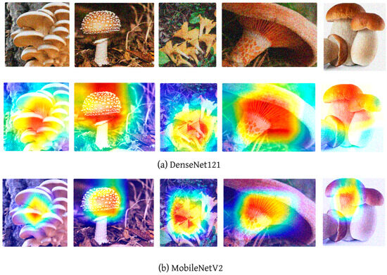 Additionally, the Grad-CAM (Gradient-weighted Class Activation Mapping) [39] technique was employed to analyze the specific areas of the images that the models prioritized during the inference process. Neural networks are composed of multiple interconnected layers with numerous parameters that are adjusted during training to process and interpret input data. However, understanding how the models generate outputs from the given inputs can be challenging, often leading to a lack of transparency and reduced confidence in their predictions. Grad-CAM is a powerful visualization method designed to interpret the decision-making processes of convolutional neural networks. It is particularly useful in image classification tasks, as it highlights the regions of an image that are most influential in the model’s prediction. In Grad-CAM visualizations, red regions represent the areas where the model is most focused, meaning that the network uses these regions to form its prediction. Conversely, blue regions signify areas of lesser importance, indicating that the model pays minimal attention to these parts when making its decision. This technique enhances the interpretability of CNNs, offering insights into how the model processes visual data and providing a clearer understanding of its decision-making process.