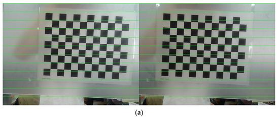 Through comparison, it is observed that before polar rectification, the positions of feature points, such as the corners of a chessboard, in the calibration images are not horizontally aligned. However, after applying polar rectification using the intrinsic and extrinsic parameters obtained from calibration, the chessboard images in the left and right images become horizontally aligned. The polar lines in the rectified images are parallel, and the vertical coordinates of corresponding points are consistent. This alignment ensures that corresponding pixels are located at the same vertical position, thereby simplifying and enhancing the efficiency of matching corresponding points in subsequent experimental processes.