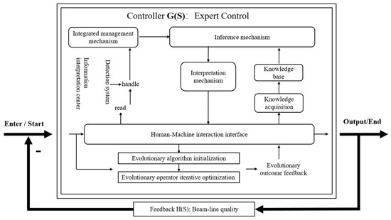In the system framework, the automatic evolutionary algorithm combines with the expert system to generate an intelligent controller, G(S). Simultaneously, the feedback function H(S) is established based on real-time beam performance, forming a closed-loop transfer function. This configuration allows for the efficient initiation and termination of beam regulation, thereby achieving highly intelligent beam control.