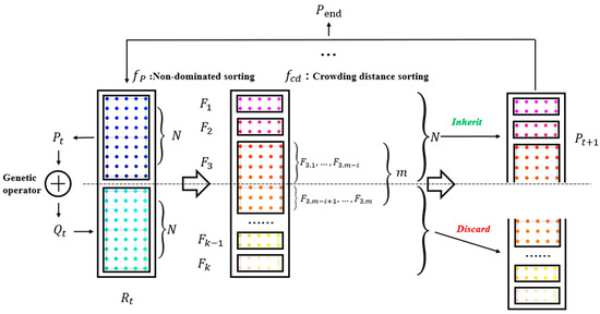 - At this point, the population contains 2N individuals, and is efficiently sorted into non-dominated categories to obtain various Pareto sets that differentiate the quality degree of the optical pose, as demonstrated in Equation (11).
