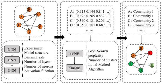 Methodology flowchart for GNN-based feature extraction and community detection.