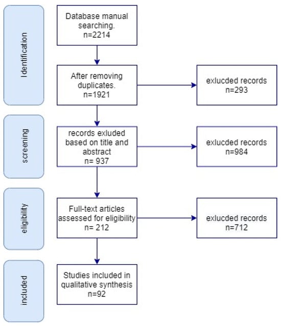 To ensure a comprehensive and systematic review of the literature on complex event-matching methods in videos, we followed the PRISMA (Preferred Reporting Items for Systematic Reviews and Meta-Analyses) guidelines. We documented the selection process using a PRISMA flow diagram, outlining each step from the initial identification of records to the final inclusion of studies in the review. The flow diagram begins with the total number of records identified through database searches and manual searching. After removing duplicates, the remaining records were screened based on their titles and abstracts, leading to the exclusion of irrelevant studies. The full texts of the remaining articles were then assessed for eligibility based on predefined exclusion criteria. The exclusion criteria were studies published before 2012, industrial reports, languages except English, and studies without quantitative results. Studies that met the criteria were included in the final review. The flow diagram visually represents this process, showing the number of records at each stage and providing a transparent account of the decision-making process for study selection. Figure 1 presents the PRISMA flow diagram. In this diagram, the research record number for each step is indicated. The excluded records were studies filtered after each step. The final analysis in Section 6 is based on the included 92 records. The following describes the research items included in this systematic review.
