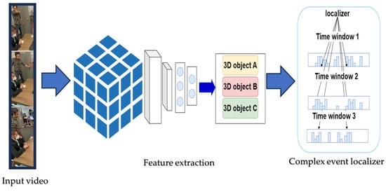 The other major approach involves training supervised or semi-supervised models for a set of labeled videos and using them to predict complex events in new videos. Figure 3 represents the general steps for approaches based on the training and prediction of videos. In this method, a video is split into a certain set of time windows. The split videos are processed by supervised machine learning to extract spatio–temporal features. In the final step, the features are localized using the localizer algorithm for each time window, and complex events are identified in a certain timestamp and location. Ma et al. leveraged video-level attributes as a set of videos including basic actions to fix the issue of characterizing dynamic properties at the image level [69]. They proposed multi-level collaborative regression (MCR) using attributes as cues for the detection of complex events. The latency problem of event recognition in videos was addressed by training the CED model based on duration, transition, and appearance parameters [70]. Another noteworthy contribution is the utilization of adaptive relatedness analysis to establish matches between labeled video frames and new videos. This approach enables effective linkage between labeled data and novel video inputs. It also enhances the event recognition system’s performance and adaptability [71].