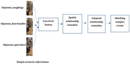 In recent years, the consumption of video content has surged dramatically. According to a 2021 report by Coppola, people spent over 3.5 billion minutes (approximately 6654.5 years) watching videos in 2016, which skyrocketed to 12.2 billion minutes (around 23,195.5 years) by 2020. Meanwhile, during this period, the market for live camera feeds doubled [7]. Additionally, Market Research Future (MRFR) reported that the artificial intelligence (AI) camera market, valued at over USD 4.96 billion in 2018, is projected to exceed USD 21.58 billion by 2025 [8]. Leveraging AI capabilities, CED in videos can meet the growing demands for video content analysis and related services. CED in video streams is crucial for monitoring significant activities, such as repair tasks [9], identifying risky behaviors [10], and overseeing assembly operations [11]. Detecting complex events in unstructured data formats like videos involves recognizing specific spatio–temporal patterns within event streams. By utilizing camera feeds and computer vision, complex event processors can apply CED across various applications requiring visual event and environment perception [12].