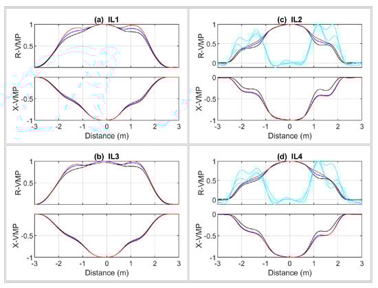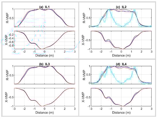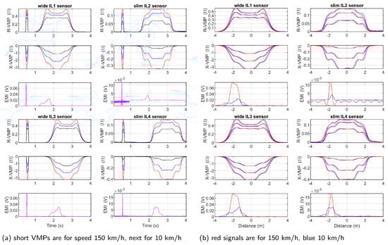- Artifacts of interest in the R-VMP and X-VMP signals are indicated by vertical dashed lines labeled and in Figure 4b, which define specific IL sensor positions relative to the vehicle model.