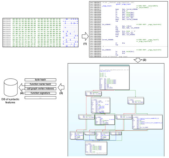 - Feng, Q.; Zhou, R.; Xu, C.; Cheng, Y.; Testa, B.; Yin, H. Scalable Graph-Based Bug Search for Firmware Images. In Proceedings of the ACM Conference on Computer and Communications Security, Vienna, Austria, 24–28 October 2016; pp. 480–491. [Google Scholar]