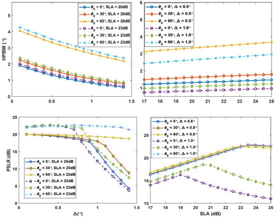 Effect of change in and SLA on HPBW and PSLR for () = (3, 2, 3, 3).