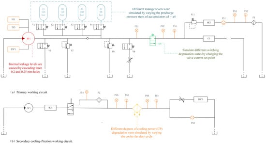 In this study, the hydraulic system dataset from the UCI database was used to verify the performance of the proposed fault diagnosis method. The structure of the hydraulic system is shown in Figure 9, which is briefly described below.
