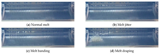 1]. Anomalies in polyester melt extrusion drawing, referred to here as melt anomalies, are among the most common causes of failures in pelletizer operations. These anomalies can typically be categorized into three states based on the morphological characteristics of the melt during such incidents: melt jitter, banding, and draping, as depicted in