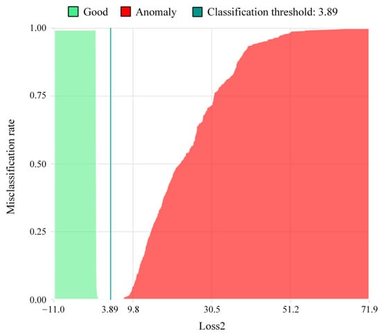 In addition, in order to verify the reasonableness of the threshold, we conducted a sensitivity analysis to observe the change in the misclassification rate of the model by gradually adjusting the threshold. The experimental results show that the misclassification rate of the model is minimized in the range close to 3.89, indicating that the threshold has good stability. Therefore, choosing 3.89 as the classification threshold not only ensures the differentiation effect between normal and abnormal samples but also enhances the adaptability of the model under different environmental conditions. This threshold selection method based on data distribution characteristics helps the model maintain consistent performance in practical applications.