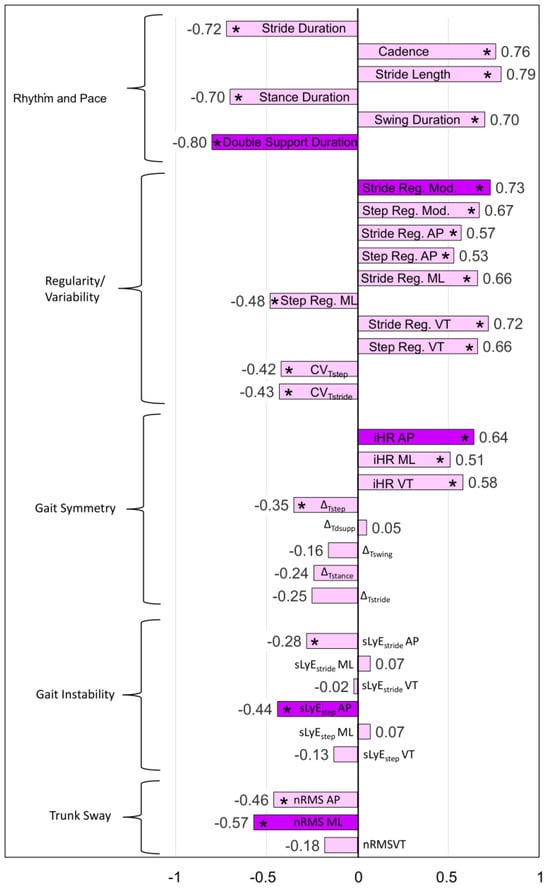 - Double support duration for the rhythm and pace domain (r = −0.80);