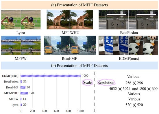 As shown in Figure 1b, the differences between these datasets in scale and resolution have been introduced in the introduction. Moreover, Lytro, MFFW, and MFI-WHU are widely used by scholars at present.