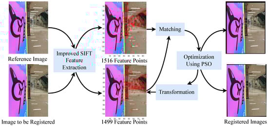 Thus, the Position, Scale, and Orientation-invariant Scale-Invariant Feature Transform (PSO-SIFT) [33] method is employed for image registration. This method falls under the category of feature point matching algorithms.