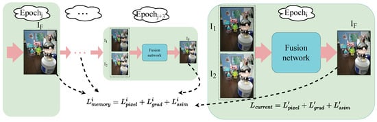 In above formulas, × indicates element-wise multiplication. indicates the Frobenius norm. M and N are the dimensions of the image in terms of row and column, respectively. and represent the two source images. represents the pixel value. and represent the mask of the focus area obtained from the source image using the spatial frequency. , , and represent the losses calculated in the current epoch. , , and calculate the loss value between the output of the current epoch and the output of the four best epochs in the previous epochs. Based on the above, the loss value of the current epoch can be obtained as follows: