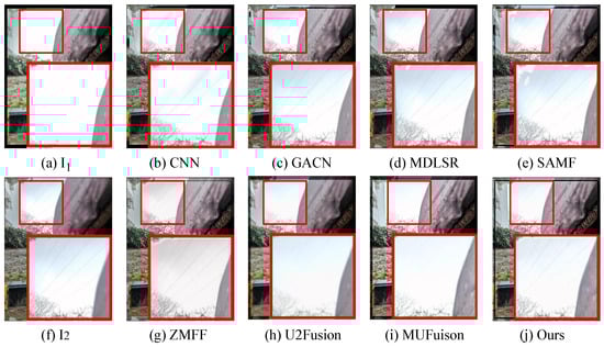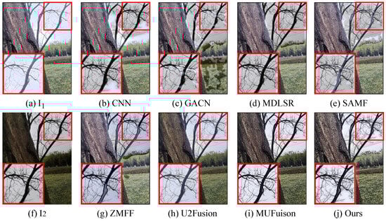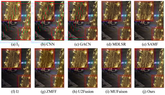 The unsupervised fusion model proposed in this paper is visually compared with seven other fusion methods. As shown in Figure 6, Figure 7, Figure 8 and Figure 9, and are two source images.