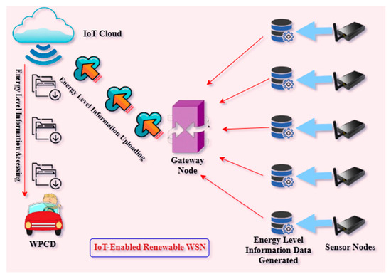 In an IoT-enabled WSN, the storing of battery-level data requires cloud computing, which can facilitate long-lasting storage. Figure 2 visualizes the suggested image of the proposed scheme: