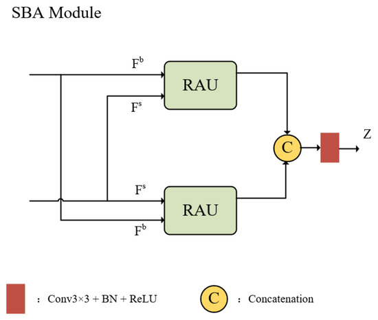 Here, is a 3 × 3 convolution followed by batch normalization and a ReLU activation layer. , containing encoder-generated deep semantic details, is in , while , carrying boundary information from the backbone, is in . concatenates along the channel dimension, resulting in the final output for the SBA module.