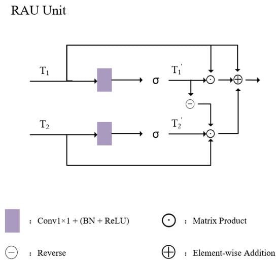 To combine these enhanced features, outputs from both RAU units pass through a 3 × 3 convolution. The RAU function can be formulated as follows: