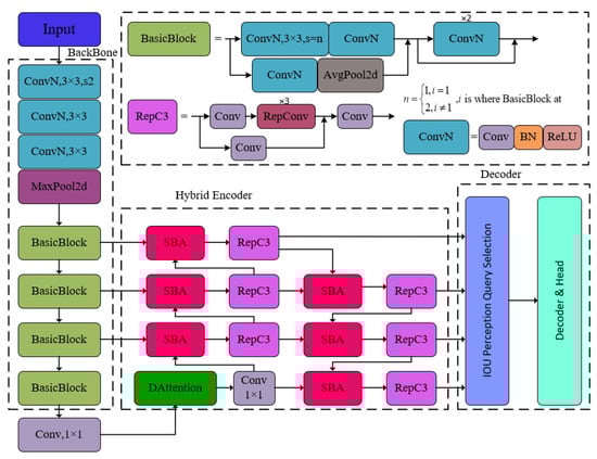 In response to the adverse effects and challenges of the NMS method on small target detection mentioned above, the RT-DETR model [11] can be used to quickly process multi-scale features. By utilizing its efficient hybrid encoder to decouple intra-scale interactions and cross-scale fusion of features at different scales, the inference speed has been improved. RT-DETR transforms the detection problem into an unordered sequence problem, transforming the originally dense detection into sparse detection. Therefore, this method can avoid the delay caused by non-maximum suppression NMS in YOLO series detectors [4], as long as the confidence ranking of feature classification scores is performed on the final prediction results, thereby improving detection speed. In terms of detection accuracy, the RT-DETR model introduces an uncertainty minimization query selection mechanism to improve detection accuracy by optimizing the initial selection of queries. This method selects the query that is most likely to represent the real object by evaluating the uncertainty of encoder features (i.e., the uncertainty of localization and classification), thereby reducing the uncertainty of the model in the decoding stage.
