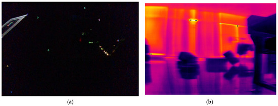 Feature extraction performance of RGB and infrared images under extreme illuminance value. (a) Feature extraction performance of RGB images at a normalized illuminance value of 0.148. (b) Feature extraction performance of infrared images at a normalized illuminance value of 0.853.
