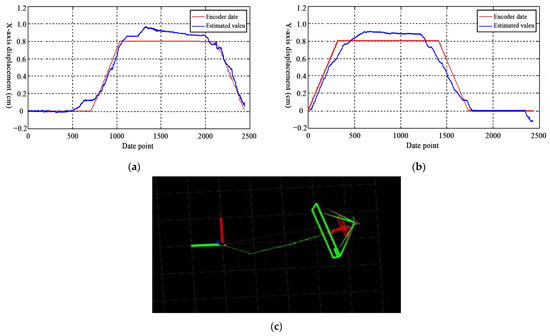 Comparison of X/Y axis data and actual trajectory of review robots under the IIVL-LM system. (a) Comparison of X-axis data. (b) Comparison of Y-axis data. (c) Actual testing and running trajectory of composite robots.