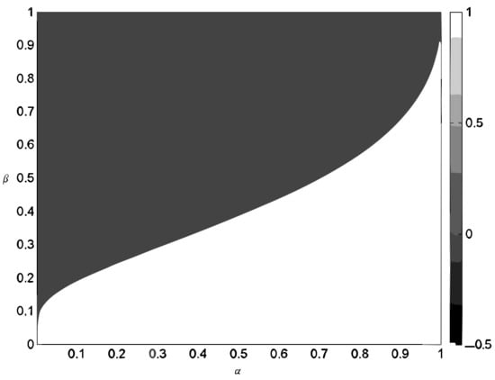 Phase transition was achieved utilizing the methodology described in references [,,], as follows. For a fixed , varied from 0.1 to 0.95 with a step size of 0.05, and varied from 1 to with a step size of 1. At each combination of , 300 sparse signals were measured using different measurement matrices and then recovered using the OMP algorithm []. Let be the original signal and be the recovered signal. For each trial, if