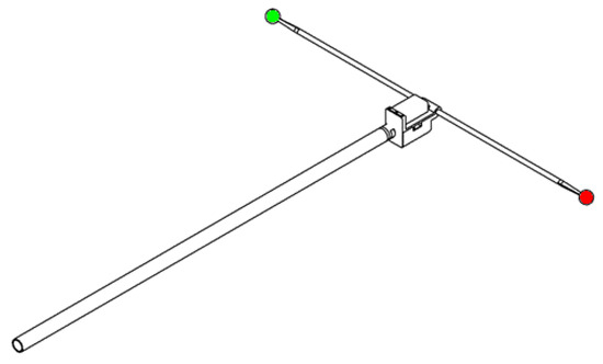 The two 3D-printed spheres are connected by a thin carbon-fiber rod. The measured distance between the centers of these spheres is 600 mm (to be used in Section 3.3.6 and Section 3.3.7). This length is large enough to keep the ratio of hand-made manufacturing error comfortably below 0.5% yet small enough to ensure portability with a detachable handle. With this length, both markers can be consistently observed simultaneously in the field of view of multiple cameras for a medium- to large-sized capture volume. The wand design is illustrated in Figure 3.
