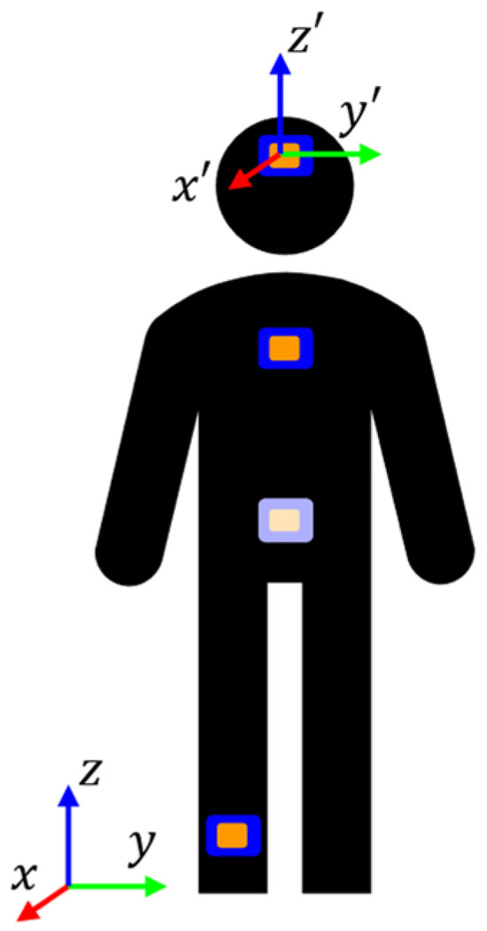 IMU placement. Lower-back IMU has been lightened to indicate placement on back of subject.