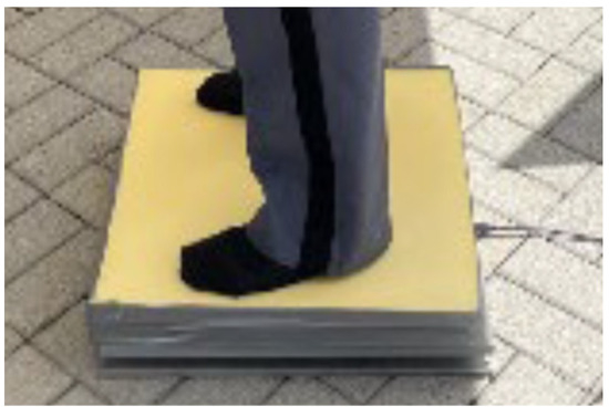 For some trials, the participants stood on a thick foam mat to elicit a destabilizing effect.