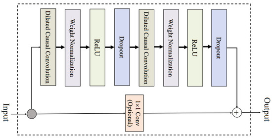 The temporal convolutional network (TCN) is highly effective for load forecasting because it captures long-range dependencies while maintaining causality in sequence modeling [61,62]. Its architecture is designed to efficiently process varying lengths of historical data, which is crucial for predicting electrical load patterns that rely on past behaviors over extended periods. This ability ensures that forecasts are grounded in relevant historical contexts, resulting in more accurate and reliable predictions essential for energy management and planning [63,64].