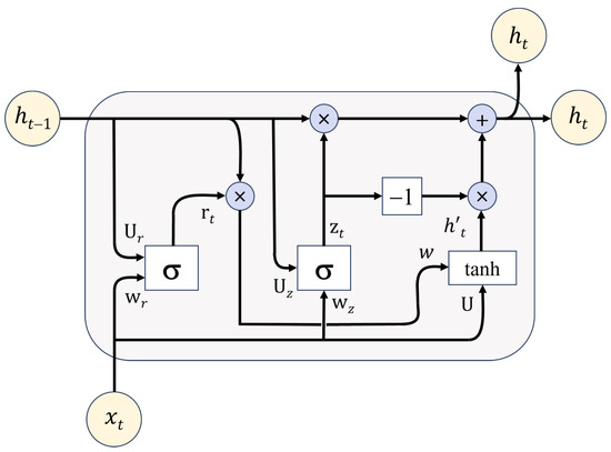 A gated recurrent unit (GRU) model is crucial for load forecasting due to its ability to efficiently capture and process sequential dependencies in time-series data, enabling accurate predictions. It addresses the vanishing gradient problem more efficiently than traditional RNNs, enabling it to learn from data points that occurred long ago in the sequence, which is vital for predicting future trends based on past patterns [65]. GRU is computationally efficient compared to long short-term memory (LSTM) models because it uses fewer parameters [66,67]. This efficiency not only accelerates the training process but also reduces computational overhead, making GRU suitable for environments with limited computational resources.