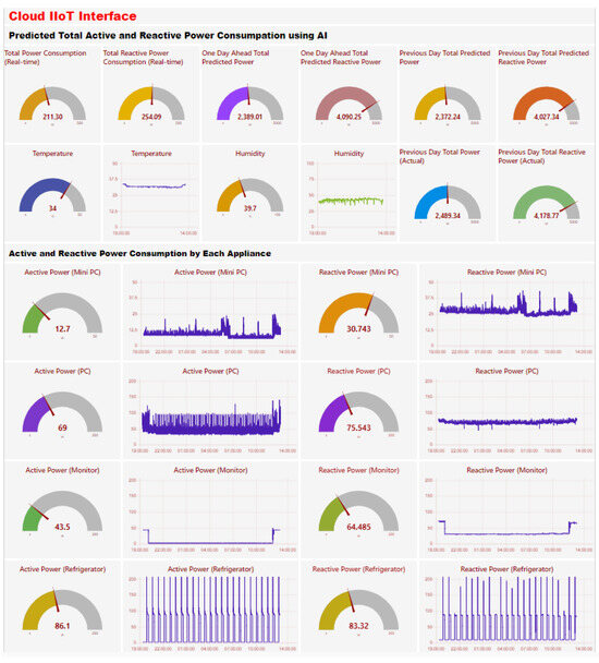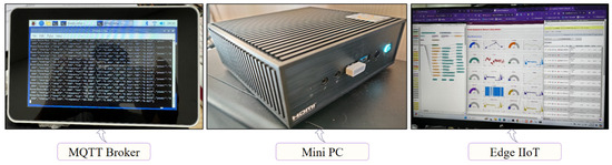 The smart data acquisition system in Figure S4 (detailed in the Supplementary Materials) features a rigid and compact setup, which is both portable and secure. By enclosing all components within a sealed plastic case, it ensures maximum safety, preventing exposure to electrical parts and mitigating any risk of accidental contact or damage. The application of the smart data acquisition system (SDAS) is connected to various appliances—a mini PC, a PC, monitors, a refrigerator, and an LED light—each located in different rooms. In this context, we are referencing specific devices set up in different rooms for two homes: for Home 01 (Edge Server 01), we have designated the mini PC as Room 1, the PC as Room 2, the monitor as Room 3, and the refrigerator as Room 4. Meanwhile, for Home 02 (Edge Server 02), we have set up the LED light in Room 5. These appliances are controlled by relays, enabling remote control and protective functionality, which enhances safety and efficiency within the IIoT framework.