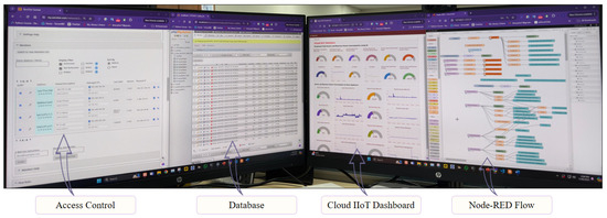 In this context, the Node-RED dashboard is employed to provide comprehensive real-time monitoring and data visualization, allowing users to continuously observe and interact with live data and trends, thereby enhancing the ability to make informed decisions based on current information. Overall, this is a process by which sensors collect environmental data and send them to an ESP32 module, which processes and publishes the data to an MQTT broker under a specific topic. The MQTT broker, acting as an intermediary, facilitates the distribution of these data to subscribers. Node-RED, subscribed to the relevant MQTT topic, receives and visualizes the data on its dashboard. Additionally, the data are stored in a database for historical data analysis, and AI models can analyze the stored data to make predictions and detect anomalies. This system offers real-time monitoring, stores historical data, performs advanced data analysis, and enhances decision-making capabilities.