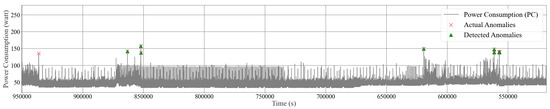 A machine learning-based approach for anomaly detection in electrical consumption profiles was presented by Luna-Romero et al. [49]. The study demonstrates a relative improvement in accuracy for anomaly detection but falls short in detailing the implementation of the ML model on a single-board computers (SBCs). This omission raises concerns about the model’s efficiency in such environments, including issues related to model size and other practical aspects of deployment. Several recent studies have introduced various anomaly detection methods, such as reconstruction-based frameworks with autoencoders [50], deep anomaly detection (DAD) [51], CNN-LSTM VAE [52], sparse U-net [53], conventional models [54], and LSTM-autoencoder [55]. However, these approaches often lack details on the computational efficiency of AI models, real-time deployment on SBCs, and other essential processes like real-time database fetching and visualization. Furthermore, many studies on anomaly detection in power consumption data overlook the transient conditions of appliances, such as refrigerators, and their impact on overall power usage [50,51,56]. Existing research has significant gaps in exploring real-time active and reactive load forecasting integrated with anomaly detection and protective systems within a secure IIoT environment. This study proposes an effective approach to implement these functionalities in real-time using both edge and cloud servers. Additionally, it introduces the utilization of single-board computers (SBCs) for implementing AI models.