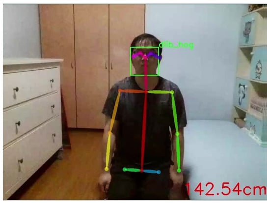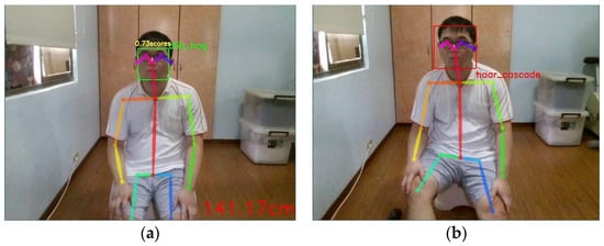 The variable in Equation (3) represents the height difference. To calculate , the y-axis coordinates of the joint points obtained from OpenPose are used. The height difference is determined by subtracting the y-axis coordinates of the two joint points. The following Equation (3) is used: