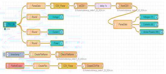 The Node-RED flow for displaying and storing electrical data of the MRC.