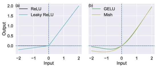- Hendrycks, D.; Gimpel, K. Gaussian Error Linear Units (GELUs). arXiv 2016, arXiv:1606.08415v5. [Google Scholar]