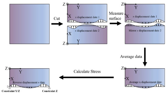 - Prime, M.B. Cross-sectional mapping of residual stresses by measuring the surface contour after a cut. J. Eng. Mater. Technol. 2001, 123, 162–168. [Google Scholar] [CrossRef]