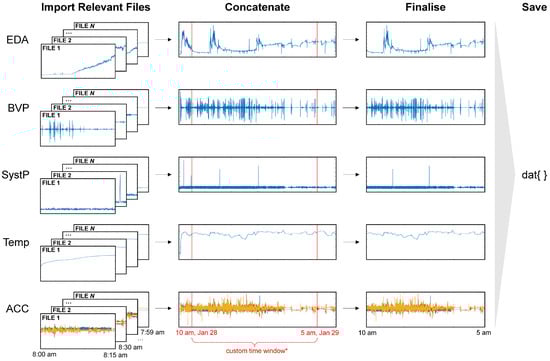 As mentioned in Section 1, to date, most researchers have neglected to state their approach to processing EmbracePlus data. The lack of detail in previous studies could be due to the fact that researchers depend on the aggregate data provided by Empatica’s proprietary algorithms. In such a case, it would be difficult to provide explicit details regarding how the data are processed. However, it is possible that some researchers also utilise their own custom scripts to process raw data but leave this unstated. Indeed, this is evident in some existing reports, which indicate the use of R, Python, or Matlab to process data but refrain from going into detail.