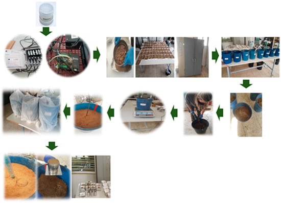 - Preparation of the containers in which the calibration process will be carried out. For all the sensors, a weight of 12 kg of processed soil was used, except for the CS616 sensor, which used a 9 kg container as the format of this sensor requires a different container.
