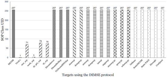 DIMSE protocol implementation. Campos et al. [24] classified and explained internal commands related to DIMSE according to the DICOM service. In addition, they created a framework called Medical Imaging Workflows Analyzer and presented two sensors. Among these, the framework showed the DIMSE protocol using a network sensor and presented the detailed structure. This study appropriately paired the commands of the SOP Class and the DIMSE protocol, and through this, we found out the relationship between the SOP Class and DIMSE command when designing the framework.