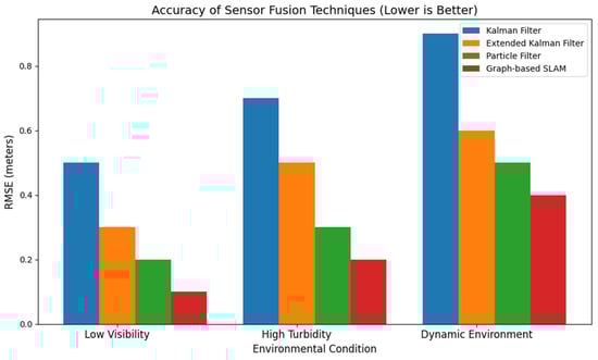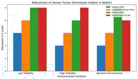 Conventional fusion methods, such as Kalman filters and particle filters, while efficient, face scalability challenges when including numerous sensors in nonlinear and unpredictable underwater environments [,,]. This study delineates three primary research gaps: (1) insufficient real-time sensor fusion in dynamic, turbid environments; (2) computational difficulties in integrating multiple sensor types under complex underwater conditions; and (3) the necessity for sophisticated filtering techniques and machine learning models to improve real-time fusion by alleviating sensor drift, noise, and environmental variability [,].