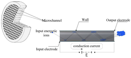 The MCP was first developed by Goodrich and Wiley [20]. Since then, it has been widely used for measuring weak signals due to its high electronic gain. The MCP is made up of millions of regular arrays of tiny hollow glass tube channels obtained from fusion glass. Each channel forms an independent continuous dynode multiplier unit as its inner wall is covered with a dynode multiplier layer. Figure 3 shows the working principle of the MPC.
