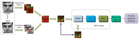- A new self-attention mechanism of the Vit layer is introduced, which establishes a self-attention mechanism among multi-channel features, aggregates spatial attention and channel attention, and also establishes an attention mechanism for pixel dependencies among different regions, through which the refined features and temporal features of micro-expressions are captured.