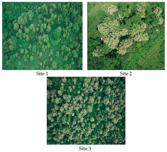 Images of tree canopies captured by the drone at sites 1, 2, and 3.