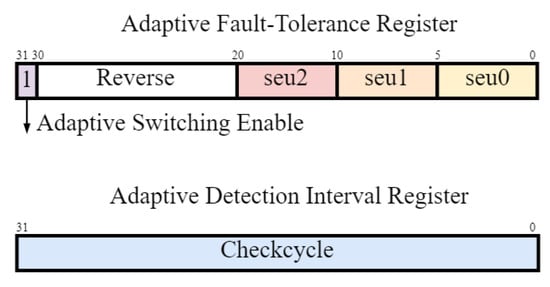 This mechanism classifies applications according to their fault-tolerance requirements and defines three tiers of fault rates. Figure 4 illustrates the process of determining the work mode in the system. This is achieved by configuring the adaptive fault-tolerance register with the following segments: seu0, seu1, seu2, and eccu, and the adaptive detection interval register with the segment: Checkcycle. The system functions in a high-performance mode to handle faults falling within the seu0 and seu1 range, a balanced mode for faults falling within the seu1 and seu2 range, and a high-reliability mode for errors that exceed seu2. In high-performance mode, a redundant mode transition is triggered when the error rate in secure storage, as measured by ECC verification, surpasses the eccu threshold during the Checkcycle interval.