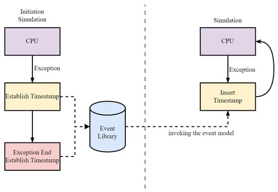 In fault injection, faults that do not propagate and affect the computation results in the hardware structure are called ineffective faults. Since ineffective faults do not affect the CPU’s operation, the single-core verification method and the multi-core verification method are indistinguishable. For effective faults in the multi-core verification process, the following situations may occur: (1) the voting mechanism masks the errors caused by effective faults in the processor; (2) the voting mechanism does not mask the errors caused by effective faults in the processor, and the pipeline is rolled back; (3) effective faults directly cause the CPU with the fault to be unable to operate normally, and that CPU performs a pipeline rollback, waiting for the other CPUs to complete their execution. Although the causes of these situations are different, the solutions after their occurrence can all be achieved by constructing exception events. Therefore, the performance of a multi-core redundant structure can be inferred from the single-core operation results and the construction of multiple event models. This approach effectively utilizes the features of the gem5 simulator, greatly reducing verification overhead and improving verification efficiency.