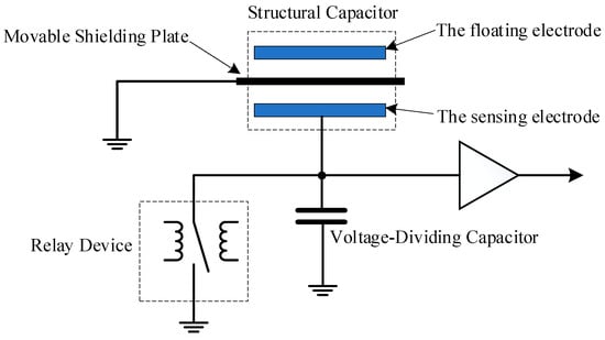 The zeroing circuit operates by pushing the shielding plate between the two plates and subsequently zeroing the charges on the sensing electrode via a relay. A controller powers it, and the power interface incorporates a restrictive backflow protection measure to avoid high pulse currents in the circuit.